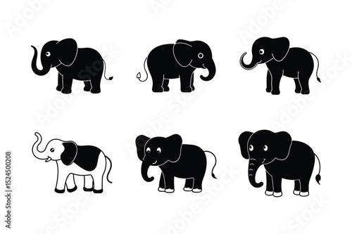 © Suzan, Naklejka premium set of cute cartoon elephant vector illustration