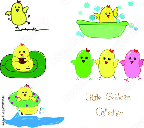 © Paweena, Obraz premium set of cute cartoon little chicken