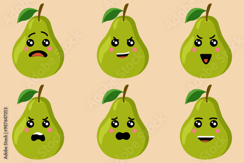 Obraz premium Set of Cute Cartoon Pear with Various Expressions