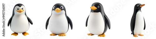 Obraz premium Set of cute cartoon penguins in various poses, perfect for children's content...