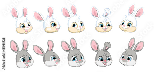Naklejka premium Set of cute cartoon rabbits heads vector
