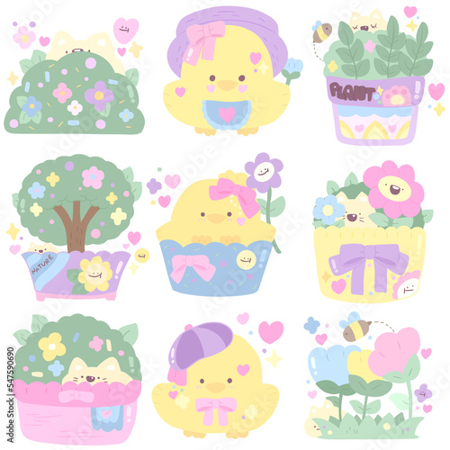 © itsjournal, Fototapeta premium set of cute chick in garden