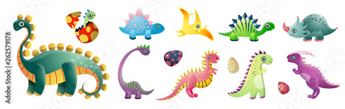 Obraz premium Set of cute colorful dinosaurs and colorful kid egg