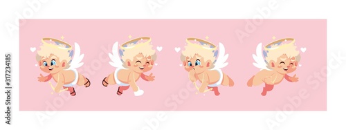 Obraz premium set of cute cupid angels in different poses, valentines day