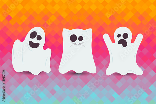 Obraz premium Set of cute Halloween ghost. Happy Halloween card