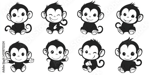 © Ace64 Studio, Fototapeta premium Set of cute hand-drawn monkeys in line art vector style featuring playful baby monkeys.