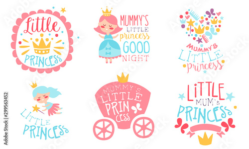 © topvectors, Fototapeta premium Set of cute inscriptions for moms princess. Vector illustration on a white background.
