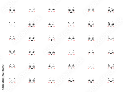 Naklejka premium Set of cute kawaii cartoon clouds with faces. Emoji collection. Illustration...