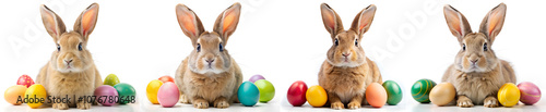 © beast01, Obraz premium Set of cute little bunnies and easter eggs on a white background.