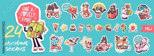 Fototapeta premium Set of Cute Merry Christmas and Happy New Year Characters. Vector