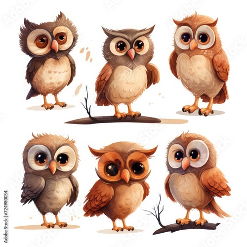 © nafanya241, Fototapeta premium Set of cute owls on white background
