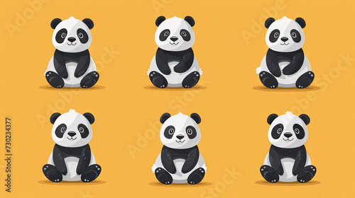 © Kateryna Kordubailo, Obraz premium set of cute panda on the orange background