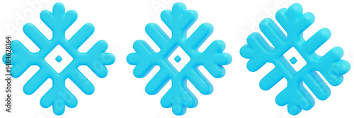 © Flowicon, Obraz premium Set of Cyan Blue Snowflakes 3d Render Icon Illustration