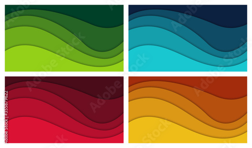 © ekyaky, Obraz premium Set of 3D abstract background and paper cut shapes, vector illustration