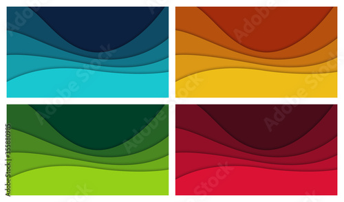 © ekyaky, Obraz premium Set of 3D abstract background and paper cut shapes, vector illustration