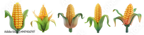 Obraz premium Set of 3D Corn Icon Illustrations with Transparent Background - High-Quality...
