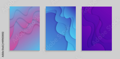 Fototapeta premium Set Of 3d Gradient Dynamic Colorful Liquid Papercut Style Cover Template. Can Be Used As Banner, Motion, Frame, Poster Or Presentation.