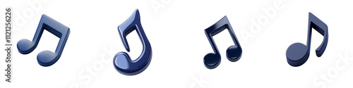 Fototapeta premium Set of 3D music note icon, navy blue color, PNG format Background
