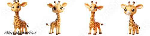 © lero.universal, Naklejka premium Set of 3D rendered illustration cartoon Giraffe isolated on white and Transparent Background