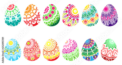 © arkadiwna, Fototapeta premium Set of different colored easter eggs. Vector