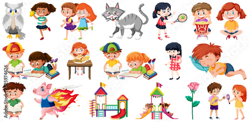 © brgfx, Fototapeta premium Set of different cute kids and objects