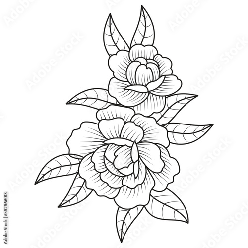 Fototapeta premium Set of different flower line on white background. Flowers drawing with line-art on white backgrounds.