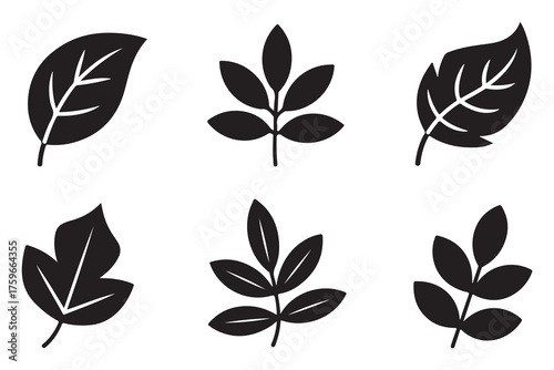 Obraz premium Set of different leaf silhouettes isolated on white background, simple botanical foliage icons collection