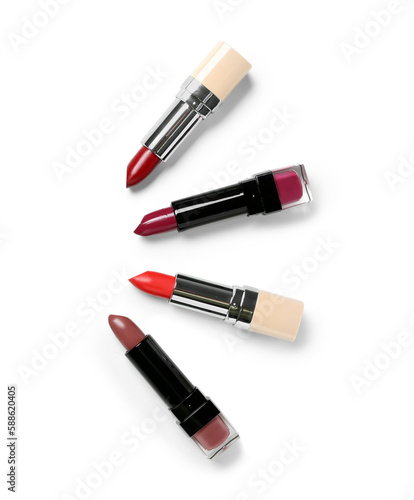 Obraz premium Set of different lipsticks on white background