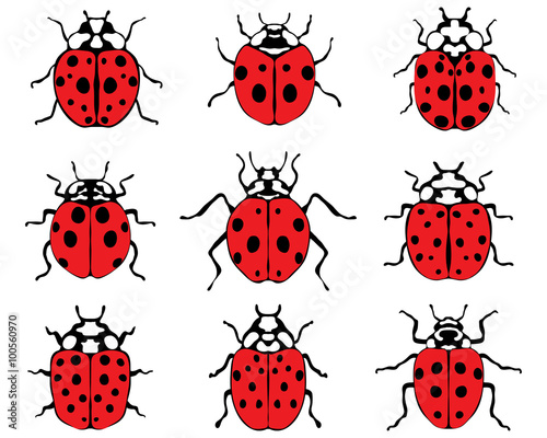 © SilhouetteDesigner, Fototapeta premium Set of different red ladybugs, vector