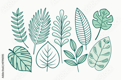© PixelDreamer, Obraz premium set of different tropical leaves vector illustration