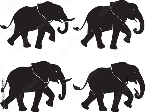 © MrsRehana, Naklejka premium Set of different type Elephant running silhouette vector illustration isolated on white background