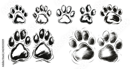 Naklejka premium Set of Dog paw hand drawn sketch pet footprint illustration