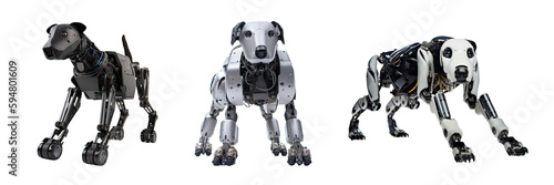 © comicsans, Naklejka premium Set of dog robots isolated on transparent background - Generative AI
