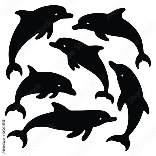 © Vector Vander, Fototapeta premium Set of dolphin silhouettes swimming. isolated vector on white background