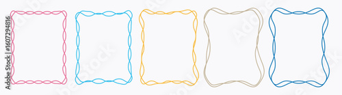 © UniquePackages, Naklejka premium Set of doodle hand drawn trendy frames with wavy lines, bows and ribbons. Trendy vintage postage borders for wedding invitations