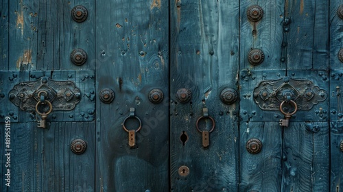 Fototapeta premium Set of doors securely locked with keys in keyholes
