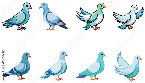 Fototapeta premium Set of doves isolated on white background