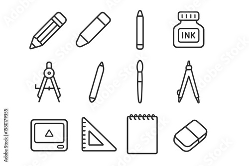 Fototapeta premium Set of drawing and writing tools on metallic background