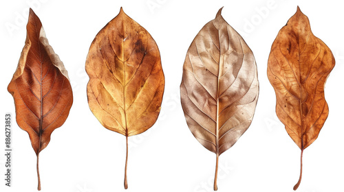 © Ketanoff, Obraz premium set of dry leaves, dead, dehydrated and discolored fallen leaves, common during fall season, transparent background or PNG file.