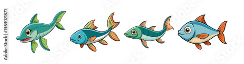 © Asif Al Akram, Fototapeta premium Set of Dynamic Windwhip Fish Colorful Artwork