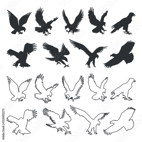 © SDN gallery, Obraz premium Set of eagle silhouette and line art icons design vector illustration.