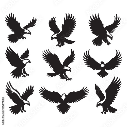 © Shamim Akhtar, Obraz premium Set of eagle silhouette vector on white background