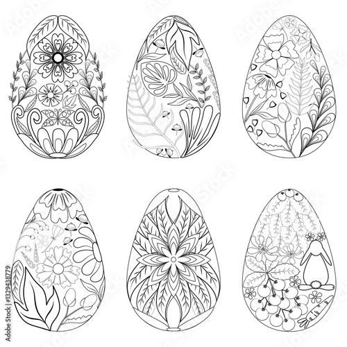 Fototapeta premium Set of easter eggs black and white, Coloring Easter Eggs