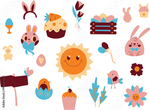 Naklejka premium set of easter spring day