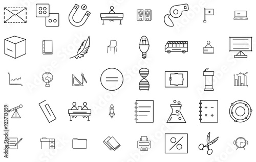 © Arju, Naklejka premium Set Of Education Science Icons Web Header Banner Design Containing Math,Structure,Classroom,Education,Science Business Infographic Elements Logo Vector Illustration