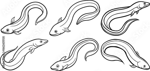 © Vector.com, Obraz premium Set of eel fish outline vector illustration line art