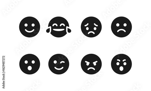 Fototapeta premium Set of eight black and white emoticon faces displaying diverse emotions