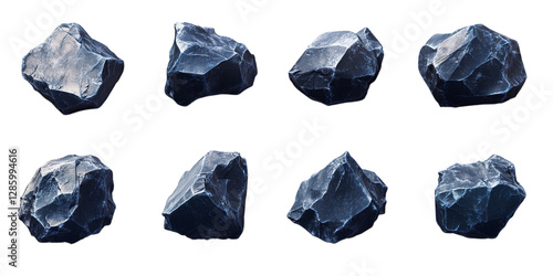 Naklejka premium Set of eight raw black stones on transparent background