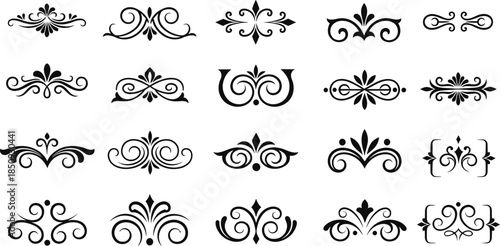 © Silent Soul, Naklejka premium Set of 20 elegant ornamental flourishes and swirls in black for invitations, certificates, and formal graphic design projects.