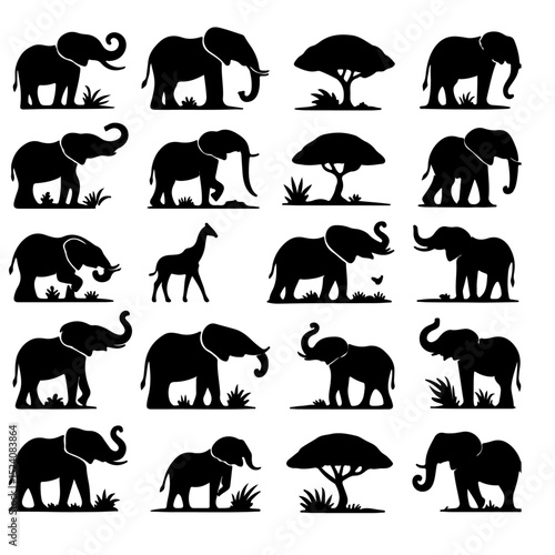 Obraz premium set of Elephant silhouette, Elephant silhouette